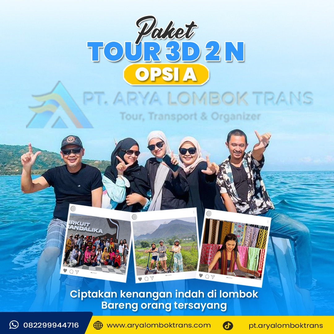 Nikmati liburan seru menjelajahi keindahan Lombok bersama Arya Lombok Trans! Dalam paket ini, Anda akan diajak mengeksplorasi destinasi favorit mulai dari pantai eksotis, wisata budaya, hingga kuliner khas Lombok. Cocok untuk liburan keluarga, pasangan, atau group tour dengan pelayanan nyaman dan profesional.